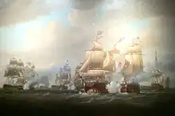 a. ^ Эта битва описана в романе Хозяин морей Патрика О’Брайана с точки зрения Джека Обри. Она также описана в романе Сирила Норткота Паркинсона «На волоске» (англ. Touch and Go).
