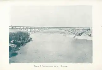 - ↑ Журналы Комиссии от 27, 28 и 30-го марта 1906 года по выяснению состояния работ по постройке Днепровского моста Второй Екатерининской железной дороги на месте работ и на заводе и по выработке мер для ускорения окончания постройки этого моста / Министерство путей сообщения; Комиссия, командированная на место работ по постройке Днепровского моста и на Александровский завод в Екатеринославе. СПб., 1906. 45 с.