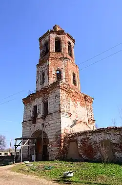 До Смутного времени в той местности стояла деревянная церковь во имя святителя Николая; после разрушения она была вновь отстроена в 1629 году. В 1734 году владельцем деревни стал граф Иосиф Ефимовский; в 1730-х годах в церкви была пристроена колокольня. В советское время храм был закрыт и разрушен; сохранились лишь башенка церковной охраны, богадельня и колокольня. После декабря 2005 года в помещении здания был произведён ремонт, установлен иконостас, начато проведение богослужений[5].
