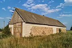 • От некогда существовавшей усадьбы XIX века осталась лишь хозпостройка.