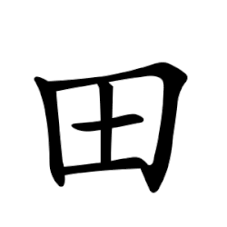 Древняя идеограмма изображала участок земли (рисового поля), разделенный продольными и поперечными межами (ирригационными каналами).