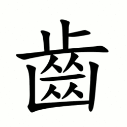 Современный иероглиф «зубы» восходит корнями к древней пиктограмме, изображавшей, вероятно, бугорки на поверхности коренного зуба.