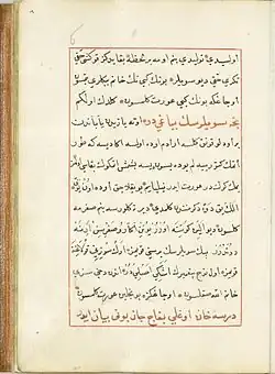 Начало первой главы эпоса (о Богач-джане, сыне Дерсе-хана) из рукописи XVI века эпоса на тюркском языке. Дрезденская библиотека