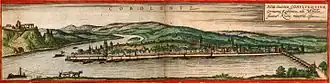 В ходе гражданской 30-летней войны в Германо-римской империи город был разорён, а в 1635 году курфюрст Трирский принял покровительство Франции и передал ей Эренбрейтштейн. В 1635 году Кобленц был последовательно взят шведами, французами и имперцами[5].