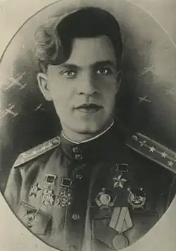 - ↑ Должность и воинское звание на дату представления к присвоению звания Героя Советского Союза.