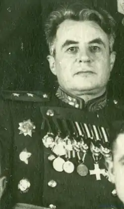 - пять орденов Красного Знамени (27.03.1942[9], 27.08.1943[10], 10.01.1944[11], 03.11.1944[8], 1953[8])