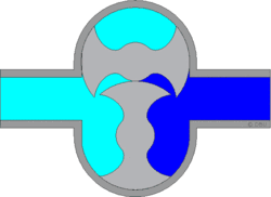 Коловратная гидромашина — обратимая объёмная гидромашина роторного типа с вращающимися рабочими звеньями, находящимися в контакте друг с другом но не передающими крутящий момент.[1][2] Вытеснение в коловратных гидромашинах производится за счёт синхронизированного вращения двух кулачковых роторов в специально профилированном корпусе.