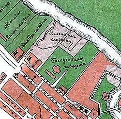 К концу XIX в. губернские богоугодные заведения на этой территории состояли из больницы на 80 человек, отделения для умалишённых на 265 человек, богадельни на 100 человек и родильного приюта. Их обслуживали «6 врачей, 3 фельдшера, 2 фельдшерицы, 2 ученика фельдшера, 1 акушерка, 8 надзирателей и надзирательниц, кроме прочего низшего служебного персонала».