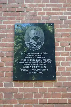 д. 105 — Штаб Приамурского военного округа, мемориальная доска генералу Р. И. Кондратенко[4]