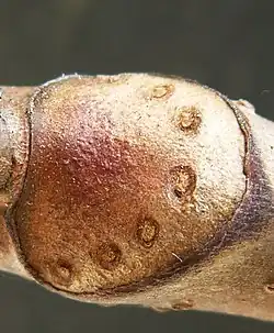 Слева направо: почка, лист, цветок, листовые рубцы на побегах, соцветие | ||||||||||