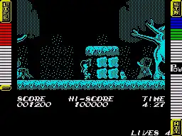 В пределах игрового поля всё изображение становится двухцветным (Elite, Chimera, Head Over Heels, Robocop, Quazatron, Terra Cresta). Впрочем, цвет, в который окрашено игровое поле, также может нести какую-либо информацию. В игре Robocop это разные уровни, в Quazatron это разные локации, в Terra Cresta это зоны в пределах уровня. Часто (Draconus, Turbo Esprit) основная часть изображения двухцветная, и только некоторые важные объекты отрисованы другими цветами.