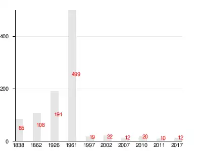 | 1862[20] | 2007[21] | 2010[22] | 2011[23] | 2017[1] |