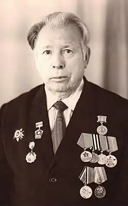 Орден Отечественной войны II степени Медаль «За трудовую доблесть» Медаль «За победу над Германией в Великой Отечественной войне 1941—1945 г.г.» Медаль «За доблестный труд. В ознаменование 100-летия со дня рождения Владимира Ильича Ленина» Медаль «Ветеран Труда» Юбилейная медаль «Двадцать лет Победы в Великой Отечественной войне 1941—1945 гг.» Юбилейная медаль «Тридцать лет Победы в Великой Отечественной войне 1941—1945 гг.» Юбилейная медаль «50 лет Вооружённых Сил СССР» Юбилейная медаль «60 лет Вооружённых Сил СССР» Знак «50 лет пребывания в КПСС» Знак «25 лет победы в Великой Отечественной войне» |