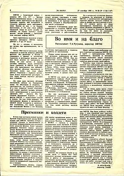 - ↑ Чугунова Т. А. Во имя и на благо // За науку : газета. — М.: МФТИ, 1991. — 27 сентября (вып. 28—29). — С. 1166—1167.