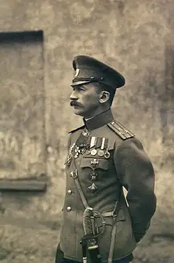 За то, что 29 марта 1915 года, при атаке высоты 1133, бросился со вторым батальоном на выручку окруженного противником четвертого батальона, штыковым боем опрокинул превосходного в силах противника и выручил 4-й батальон из опасности.