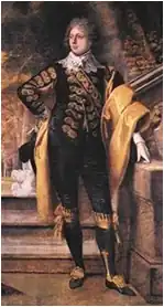 Уильям Кортни, 3-й виконт Кортни (1768—1835), в маскарадном платье, которое он надел в возрасте 21 года на бал по случаю совершеннолетия в замке Паудерем в 1789 году