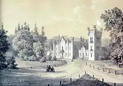 Дворец Коссаковских в Вайтушках после перестройки, осуществлённой С. О. Коссаковским. Рисунок с натуры Наполеона Орды.