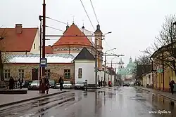 Известный фотограф Ян Булгак сделал фото, пройдя ещё дальше в центр. Главным звеном в видовой перспективе стала колокольня бригитского монастыря. Она словно перешла через улицу, чтобы стать более заметной среди разделов улицы по глубине[34].