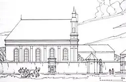 - Брама (на рисунке №1) со стороны ул. Маркса. Боковой вход в костёл.