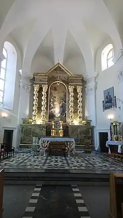 Главный алтарь костёла — деревянный, как и четыре боковых. Амвон изготовлен наподобие тех, что в виленской часовне Св. Казимира. Орган был создан известным гданьским мастером М. Фризе. В 1964 году в криптах костёла найдено большое количество икон и изображений, которые после реставрации в Эрмитаже украсили экспозицию Национального художественного музея Республики Беларусь в Минске[30].