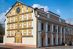 Здание размещённое по адресу Советская, 8, декорировано пилястрами и барочными волютами. Планировка - коридорная.