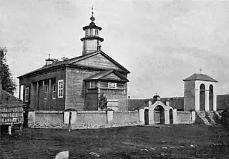 В 1897 году на средства графа Августа Потоцкого территория костёла была обнесена кирпичным забором. Въезд на эту территорию был обозначен кирпичными воротами, которые были оштукатурены и побелены. В ограду справа от ворот была встроена колокольня.