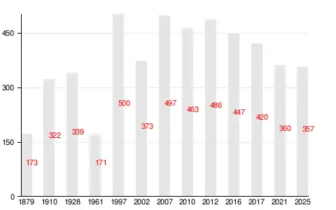 Число жителей по семейным спискам 1879 г.: 77 м. п., 96 ж. п.; по приходским сведениям 1879 г.: 77 м. п., 89 ж. п.[5]