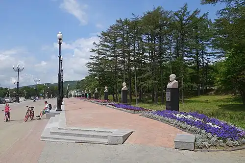 - 1 2 В Южно-Сахалинске появилась аллея героев. Regnum (1 сентября 2005). Дата обращения: 9 апреля 2015. Архивировано 18 апреля 2015 года.