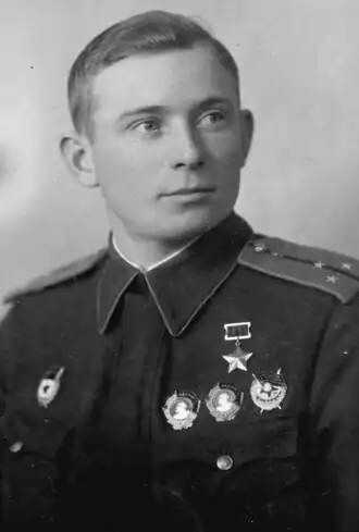 - ↑ Указ Президиума Верховного Совета СССР «О присвоении звания Героя Советского Союза начальствующему составу Военно-Воздушных сил Красной Армии» от 22 февраля 1943 года // Ведомости Верховного Совета Союза Советских Социалистических Республик : газета. — 1943. — 23 февраля (№ 9 (215)). — С. 1. Архивировано 19 ноября 2021 года.