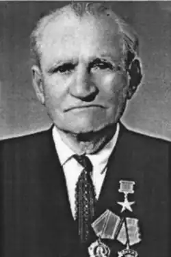 В 1948 году труженики фермы обработали 1203 гектара зяби вместо 927 гектаров запланированных и собрали в среднем с каждого гектара по 30,8 центнера пшеницы на участке площадью 150 гектаров. Его участок сдал государству 750 тонн зерновых вместо запланированных 200 тонн. Указом Президиума Верховного Совета СССР от 14 мая 1949 года удостоен звания Героя Социалистического Труда за «получение высоких урожаев пшеницы в 1948 году» с вручением ордена Ленина и золотой медали «Серп и Молот» (№ 3608)[1].