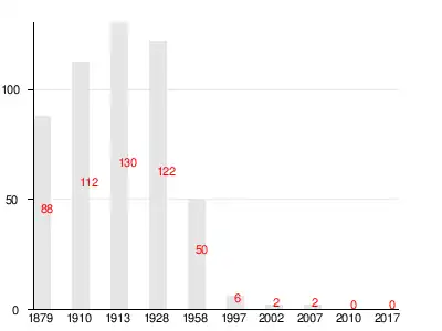 Число жителей по семейным спискам 1879 г.: 40 м. п., 44 ж. п.; по приходским сведениям 1879 г.: 38 м. п., 41 ж. п[2].