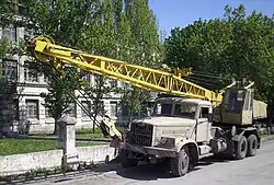 - Кран на шасси автомобильного типа[6] — кран стрелового типа на ходовом устройстве типа автомобильного шасси[3].