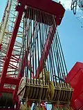 - Стрелы решётчатой конструкции[6]. Подвешиваются на гибкой подвеске при помощи системы канатов[4] — от стрелового полиспаста[8]. Стрелы, изменяемые по длине, оснащаются специальными вставками, устанавливаемыми в среднюю часть стрелы[6].