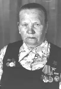 Работала свинаркой в колхозе до выхода на пенсию в 1971 году. Общий стаж работы свинаркой составил 23 года.