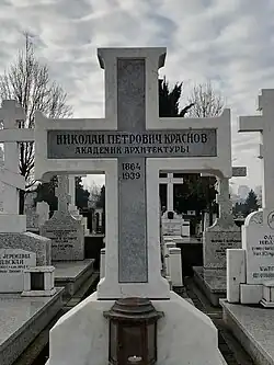 - Косик В. И. Русские зодчие. Монументы памяти — есть перечень работ Н. П. Краснова в Белграде