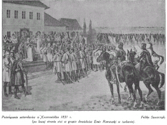 В 1703 году здесь был построен деревянный православный храм им. святого Апостола Иоанна Богослова. Он был 6 аршин (4,25 м) в ширину и 15 аршин (10,65 м) в длину с отдельной колокольней. Иконостас в нём был дощатый, двухъярусный, с иконами греческого письма. Этот храм существовал до 1873 года.