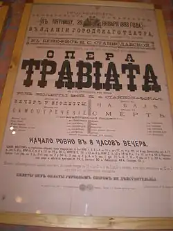 Афиша оперы «Травиата». 29 января 1893 года. Бенефис П. С. Станиславской. Начало ровно в 8 часов вечера.