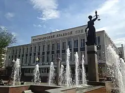 | Здание Красноярского краевого суда на фоне «Фонтана правосудия» с изваянием богини Фемиды | |