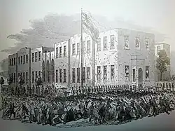 Когда женщина была арестована полицейским, толпа стала бунтовать. В зал Совета полетели камни и члены Совета были вынуждены прятаться под столами и за колоннами. Тем не менее губернатор, сэр Корнелиус Альфред Молони, отказался отменить Указ. Когда стало известно, что нижний этаж здания горит, был зачитан акт о мятеже, после чего полиция открыла огонь по толпе. Шестнадцать человек были убиты и сорок два ранены. Красный дом был полностью разрушен. После пожара остался только остов здания.