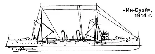 «Инжуй» («Ying Swei» 应瑞) — заложен 12 декабря 1910 в Барроу (Англия) на верфи Виккерса, спущен на воду 14 июля 1911 г., введён в строй 1 декабря 1912 г.