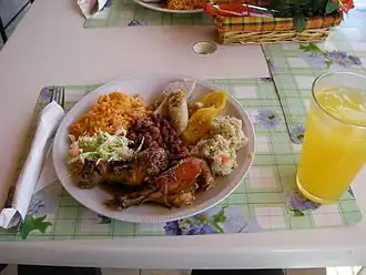 Кубинская креольская кухня, как правило, сосредоточена вокруг бобов, свинины и риса в качестве основных ингредиентов[12]. В 1850-х годах появление кубинских кулинарных книг на острове начало подчеркивать особую «кубинскую» или «креольскую» кухню[13]. Помимо использования иностранных ингредиентов, кубинская креольская кухня также регулярно использовала продукты, эндемичные для острова Куба, особенно виандас , которые представляют собой категорию богатых углеводами продуктов, включающую сладкий картофель, маниоку и зеленые бананы[13]. Интересно, что помимо их кажущейся повсеместности в кубинской креольской кухне, виандас также известны своими лечебными свойствами, обычно их используют для облегчения расстройства желудка[13].