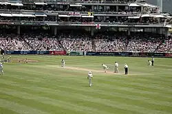 Правило 19: Границы поля. Границы поля определяются судьями и капитанами перед игрой. Желательно, чтобы граница поля была обозначена по всей своей длине. Если отбитый мяч касается или пересекает границу, команда бэтсмена получает 4 рана. Если мяч достиг границы без касаний поля, команда получает 6 ранов[30].