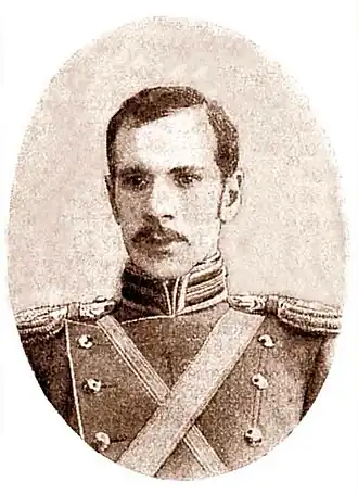 - ↑ Высочайший приказ по ВВ от 06.03.1899; произведен из подпрапорщиков 49-го пехотного Брестского полка (старшинство в чине подпоручика — с 06.03.1899).