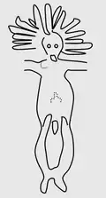Общий размер камня уменьшился в связи с обломавшейся верхушкой, и сегодня камень возвышается над землёй на 1,5 метра, уходя в землю на половину. На нём высечено изображение распростёртой женщины (или богини) с символом солнца вокруг головы[1].
