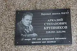 - 22 мая 2019 года, в день 100-летия со Дня рождения А. С. Крупнякова, в рамках мероприятий Дня писателя «Певец земли Акпарса — Аркадий Крупняков» на здании Советской центральной библиотеки, носящей имя писателя, была установлена мемориальная доска[13].
