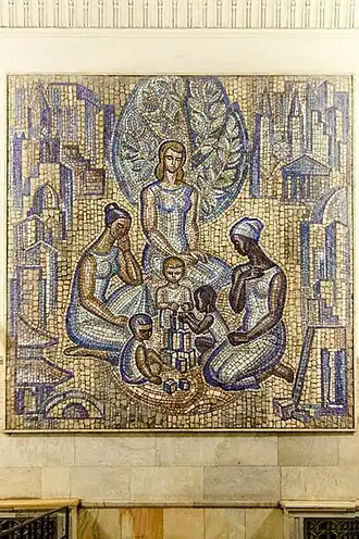 - наземный вестибюль станции «Проспект Мира» — мозаика «Матери мира», 1976 год;