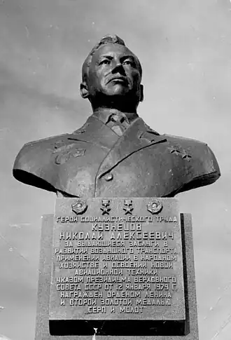 Николай Алексеевич Кузнецов (19 декабря 1922, Новокарповка, Киргизская АССР — 12 августа 2009, Алма-Ата) — заслуженный пилот СССР. Дважды Герой Социалистического Труда (1973, 1979), более 40 лет работал в Казахском управлении гражданской авиации, в 1971—1984 годах — начальник управления. Лауреат премии Совета Министров СССР, четырежды избирался депутатом Верховного Совета Казахской ССР.