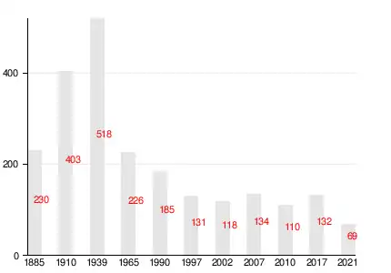 | 1885 | 1910 | 1939 | 1965 | 1990 | 1997 | 2002 |