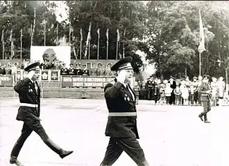 Плац 6 гв.мсд, обход парадного строя, командир дивизии А. Дорофеев и начальник штаба В. Кулаков, Бернау, ГДР, ГСВГ ВС СССР, 1984 год.