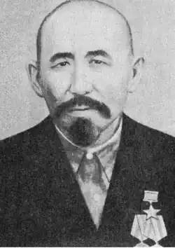 - ↑ В Указе о награждении званием Героя Социалистического Труда указано имя — Жусуп